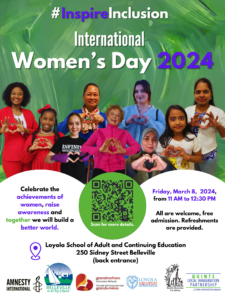 March 8, 2024 from 11:00 am to 12:30 pm at Loyola School for Adult and Continuing Education, 250 Sidney Street, Belleville (use back entrance).