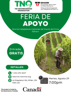 Migrant workers in Prince Edward County are invited to a FREE support fair on August 29th from 7pm at 46 Stapleton Road Hillier, PEC. Agencies supporting migrant workers will be available to provide information and assistance.